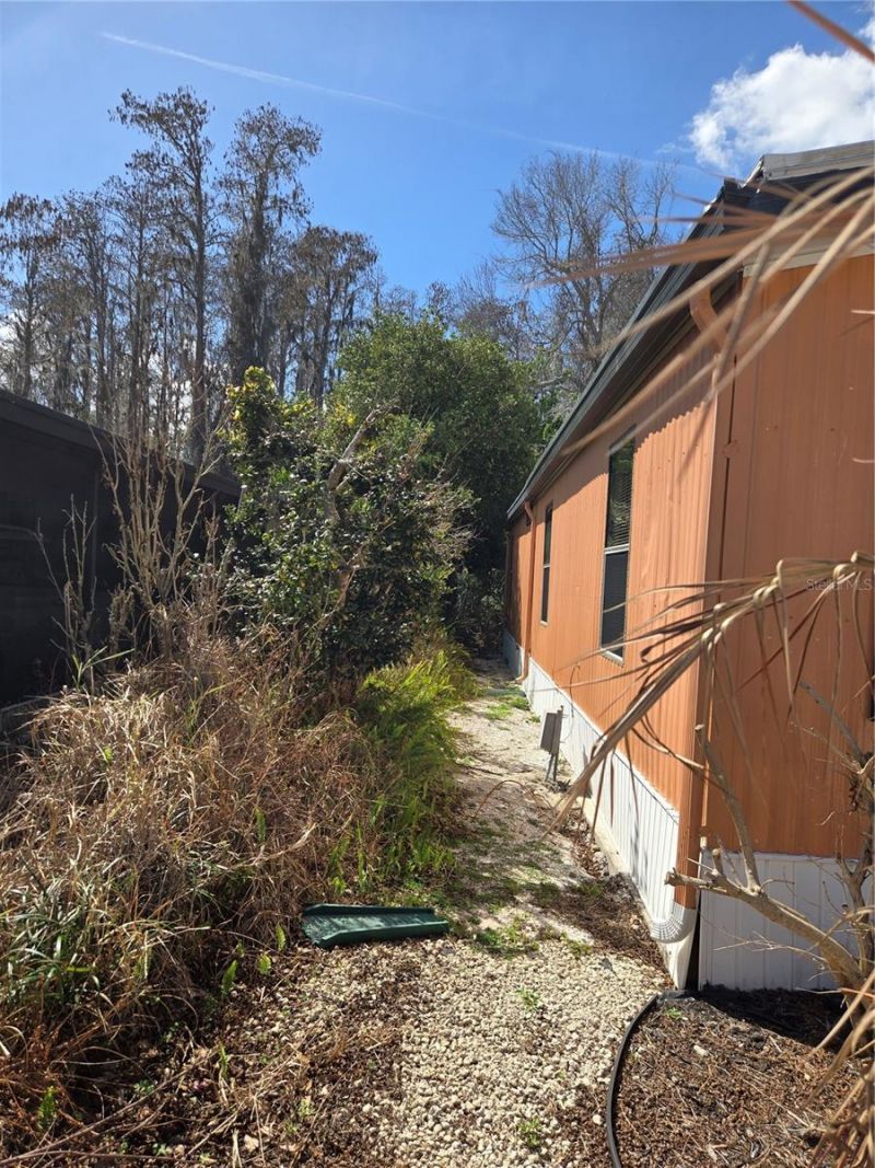 OWN YOUR OWN LAND! 55+, pet friendly, community of neighbors! This charming updated home offers 2 bedrooms and 2 bathrooms, perfect for those seeking a comfortable and low-maintenance lifestyle. Landscaped yard and a paver driveway. The open floor plan provides a spacious, light & bright, inviting home. Updated flooring, AC with HEAT PUMP and all duct work replaced just 5 yrs ago. Beautifully updated kitchen features has granite countertops, lots of work space, updated appliances, deep double sink and a beautiful stained glass window!. Both bathrooms are updated. The Laundry Room is just off the kitchen and has a closet pantry. Located on the parameter of the community, the rear patio lets you enjoy nature and privacy! This community is delightfully peaceful/quiet while providing plenty of social enjoyment, a community pool, dog park, clubhouse, gym and shuffleboard. Enjoy the attached video then make an appointment to see this one. Best price, too!